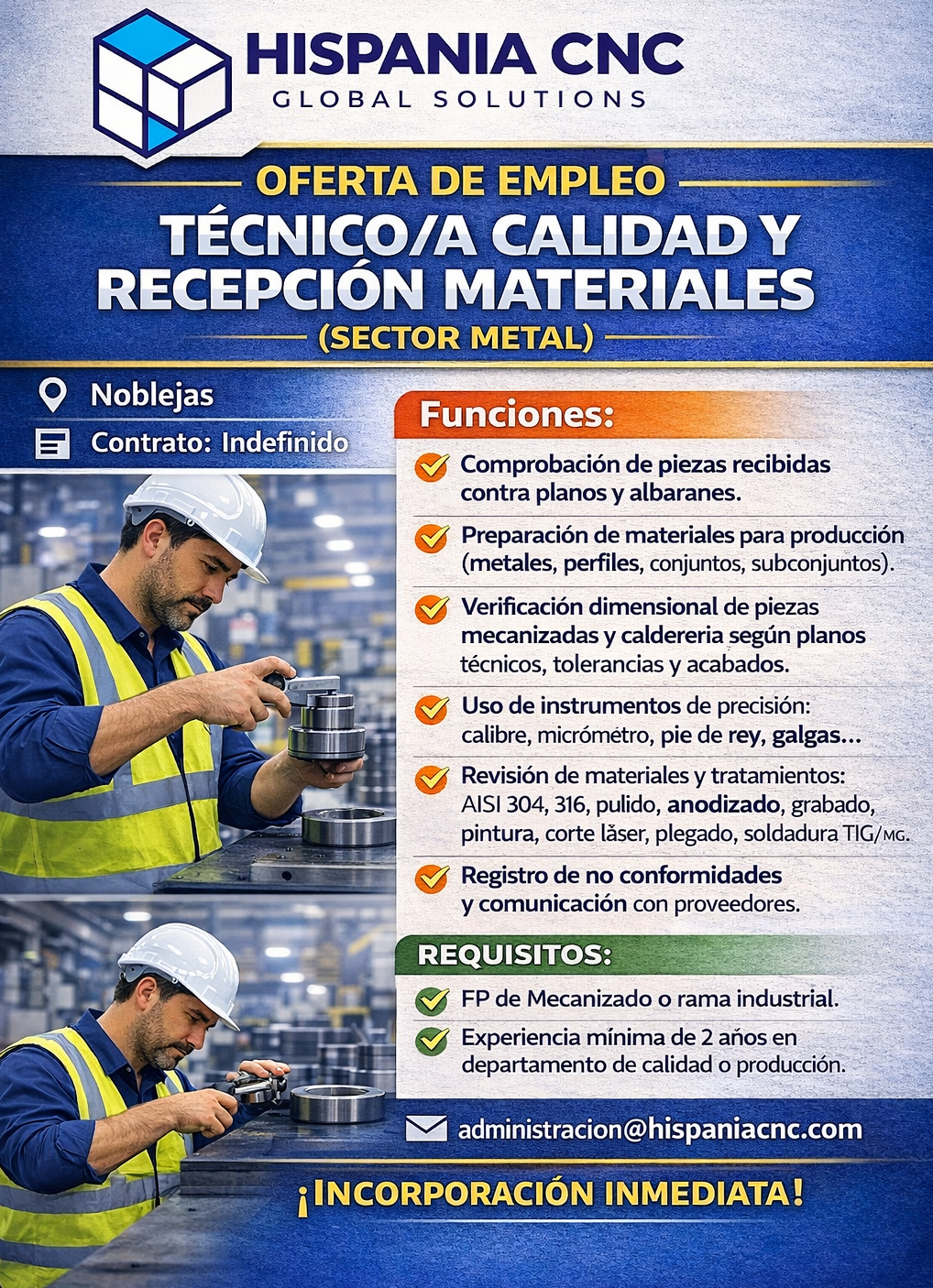 tÉCNICO/A CALIDAD Y RECEPCIÓN MATERIALES (SECTOR METAL)