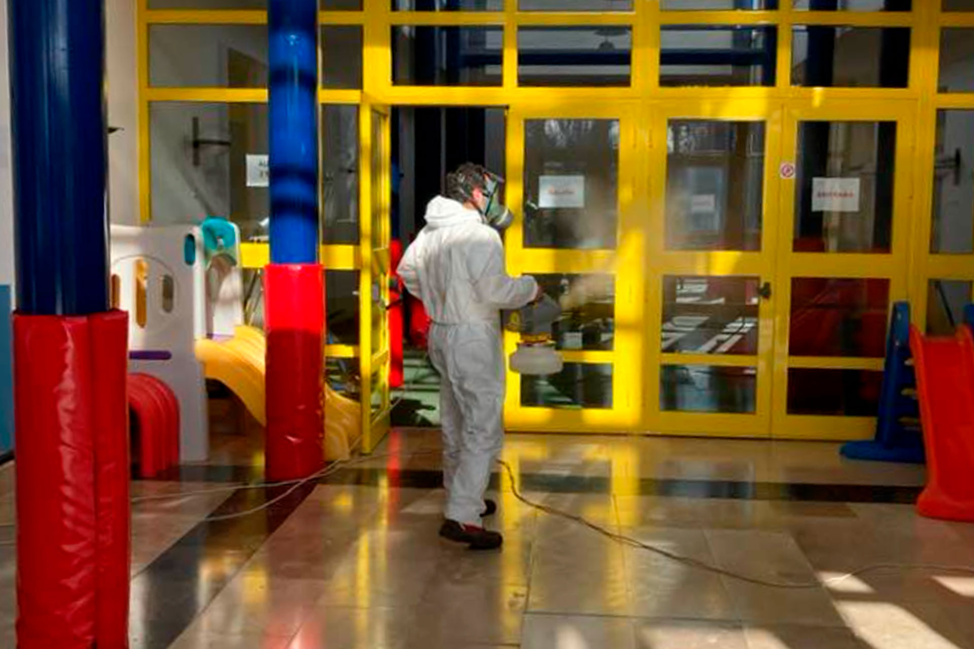 Todos estos edificios se encuentran ya desinfectados y nebulizados mediante la aplicación de viricidas autorizados, y en cuanto las disponibilidades de los edificios lo permitan continuaremos con la Iglesia Parroquial, la Ermita, y el Centro de Salud.